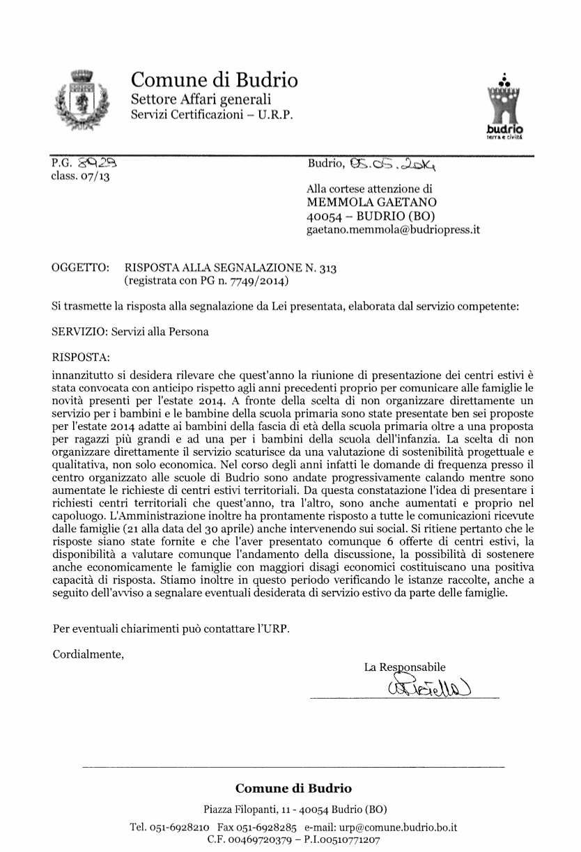 Avevamo pertanto raccolto le “lamentele” dei Cittadini interessati e sottoposto al Comune di Budrio, alla Responsabile Signora Pratella, alcuni quesiti relativi alla questione. Dopo un po’ di tempo la risposta è arrivata e per assolvere al compito di completa e corretta comunicazione, provvediamo a pubblicare integralmente il testo come pervenutoci dall’Ufficio comunale preposto.